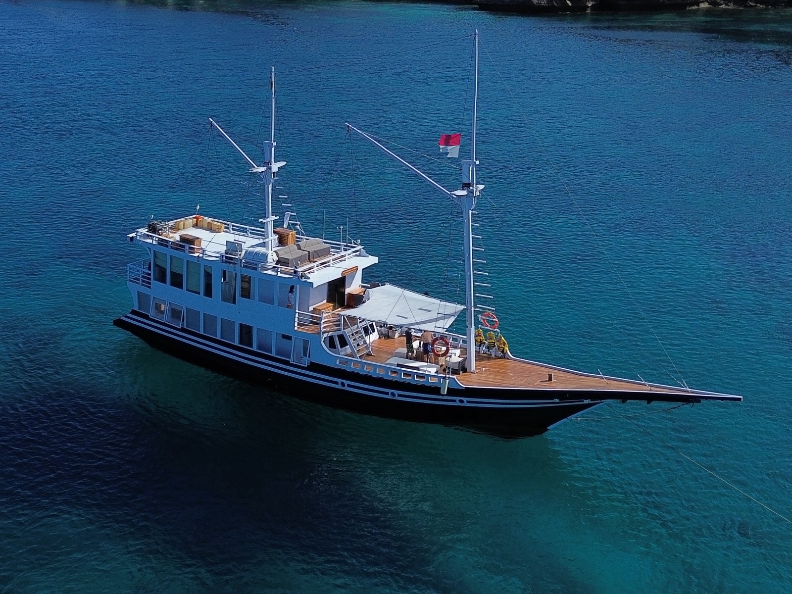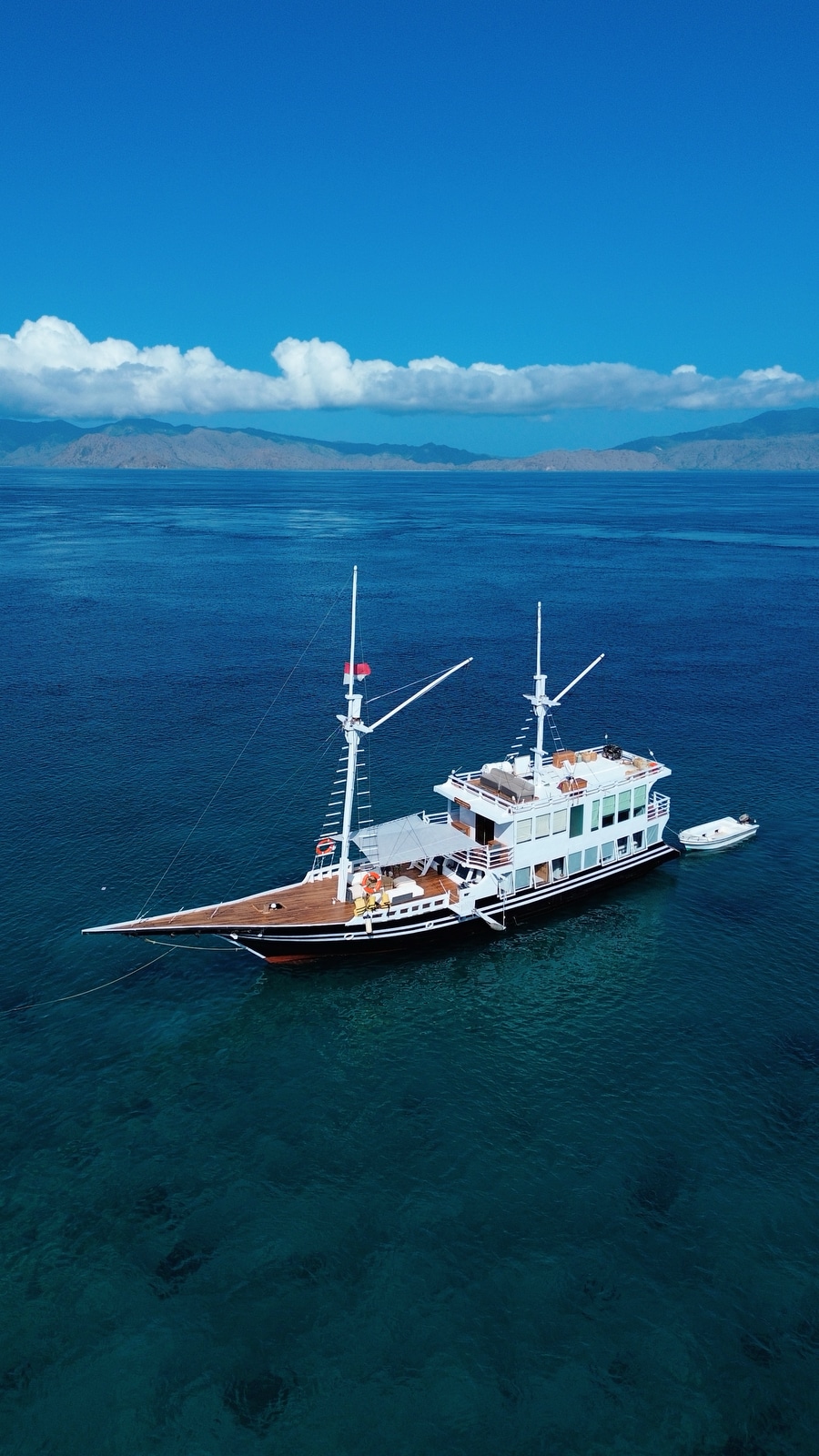 Derya is a traditional phinishi boat with a modern leisure concept. Its name is derived from the Persian word ‘Darya,’ meaning ocean and sea, reflecting the immersive experience it offers guests exploring the mesmerizing Komodo islands.